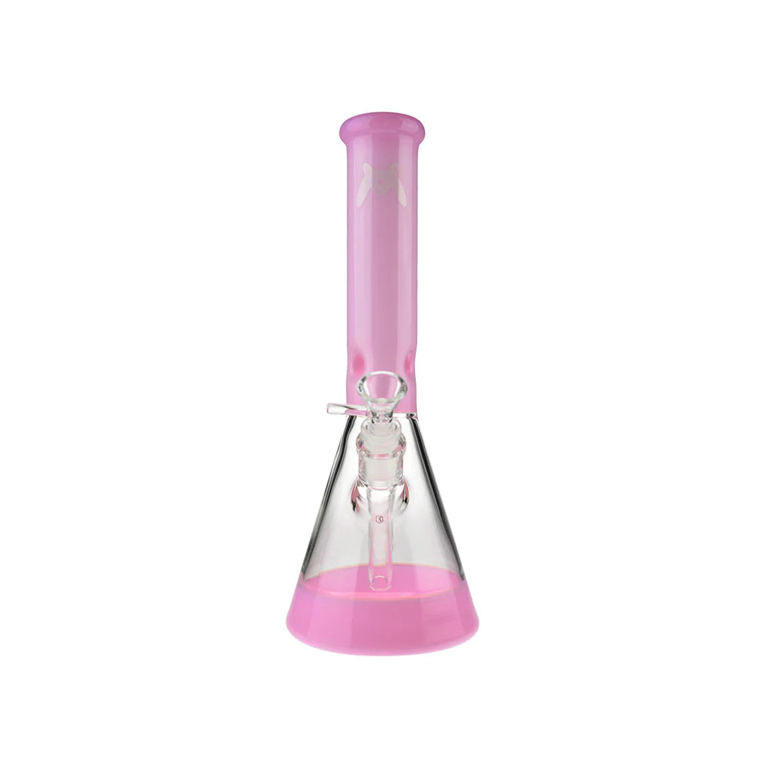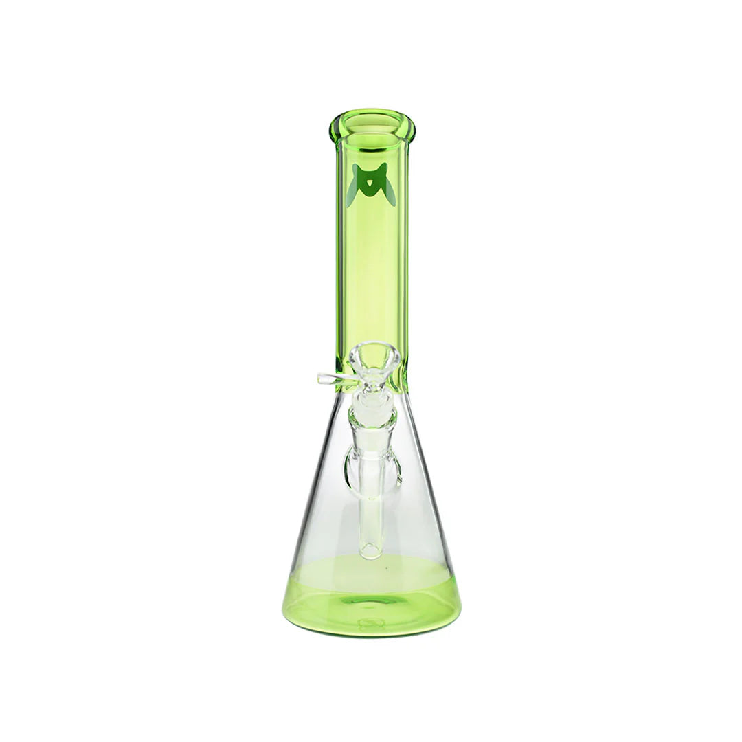 The MAV Glass 12" x 44mm Full Color Beaker Bong showcases a vibrant color construction with a matching colored base and neck. This piece features the matching MAV emblem and sits beautifully on any shelf.