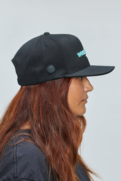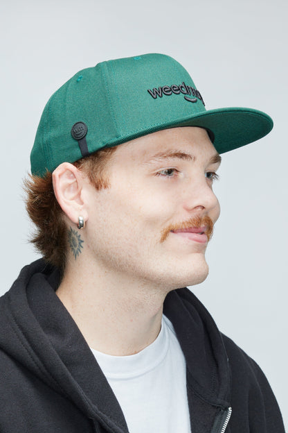 The Weedmaps Classic Snapback V2 features the Weedmaps logo embroidered on thefront and side with an adjustable snapback closure for a custom fit. This snapback includes a moisture-wicking elastic sweatband for comfort during extended wear.