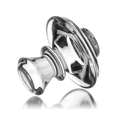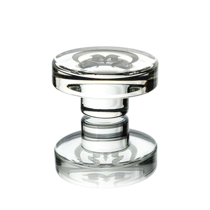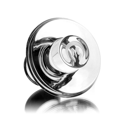 The Mothership Glass Clear Slurper Cap features clear glass construction with etched Mothership branding on top, designed for compatibility with Terp Slurpers or Charmers.