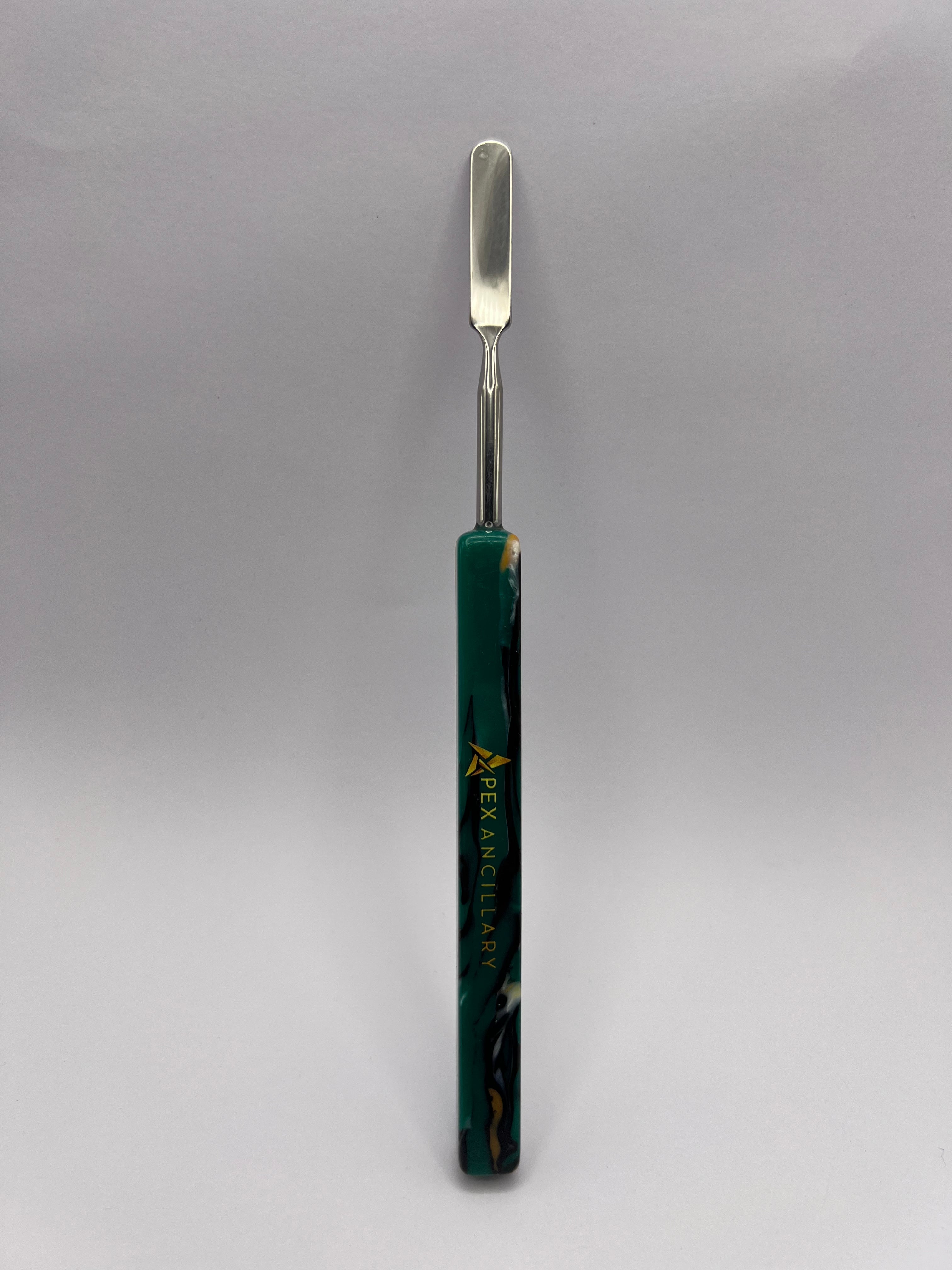 The Apex Ancillary Epoxy Resin Handle Carving Tool features ergonomic epoxy resin handle construction paired with a medical-grade stainless steel paddle tip designed for precision work across wood, clay, and other materials. This durable carving tool offers a secure grip to reduce hand fatigue during extended use and delivers clean, precise cuts for detailed carving projects.