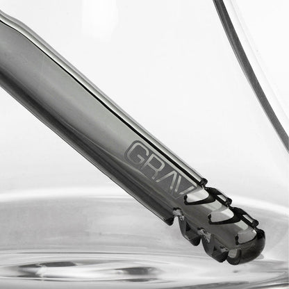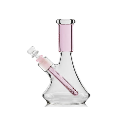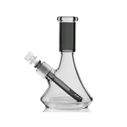 The GRAV All-Glass Deco Beaker stands firm, with a classic beaker base construction made from durable borosilicate glass. The straightforward design features a fixed downstem that filters through the wide chamber. This compact piece combines the stability of the beaker shape with an all-glass smoke path for clean, filtered sessions.
