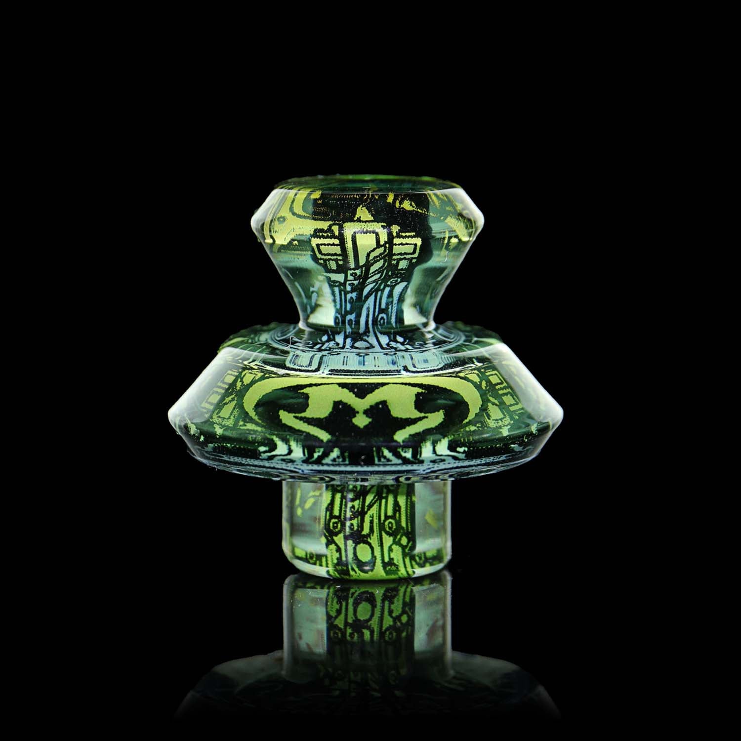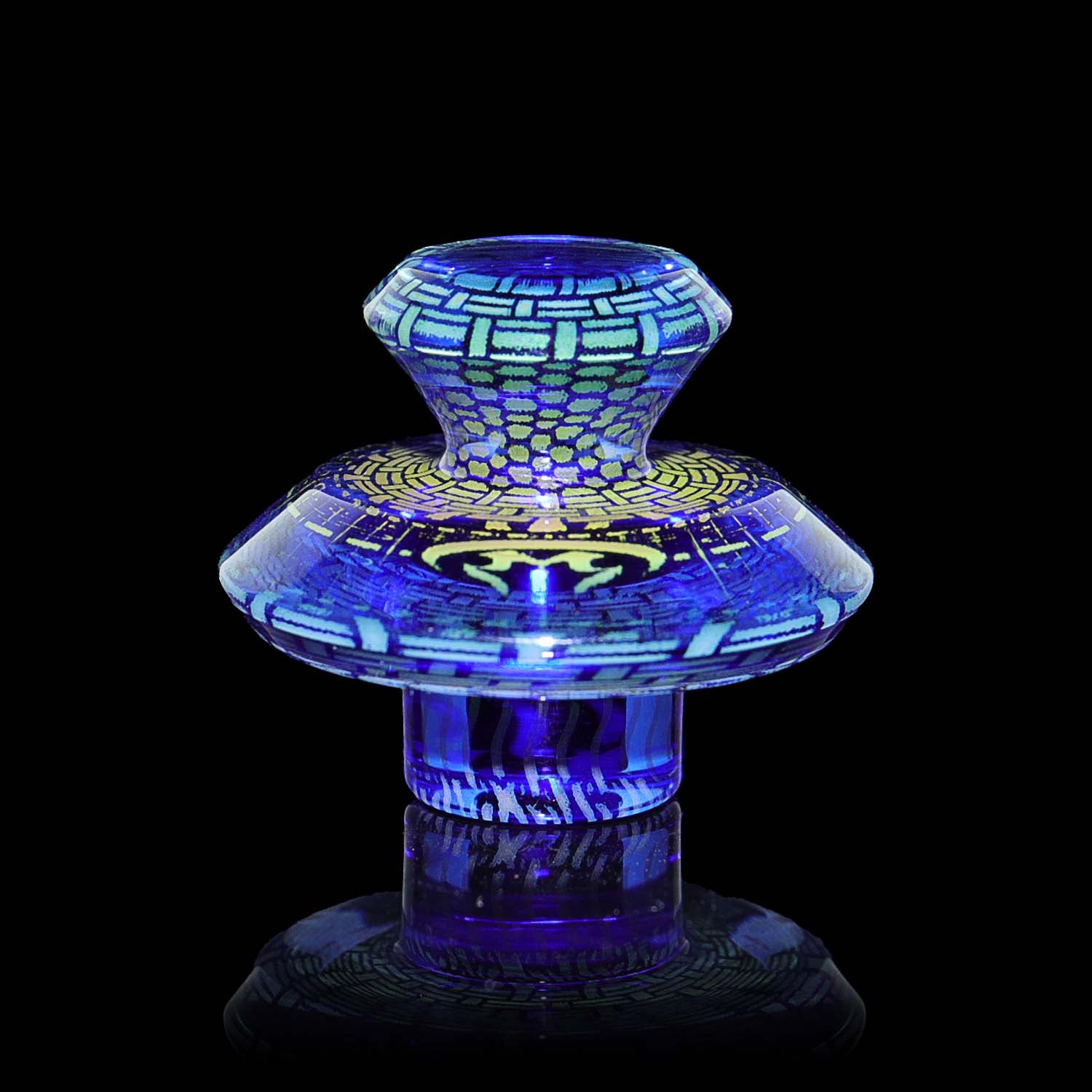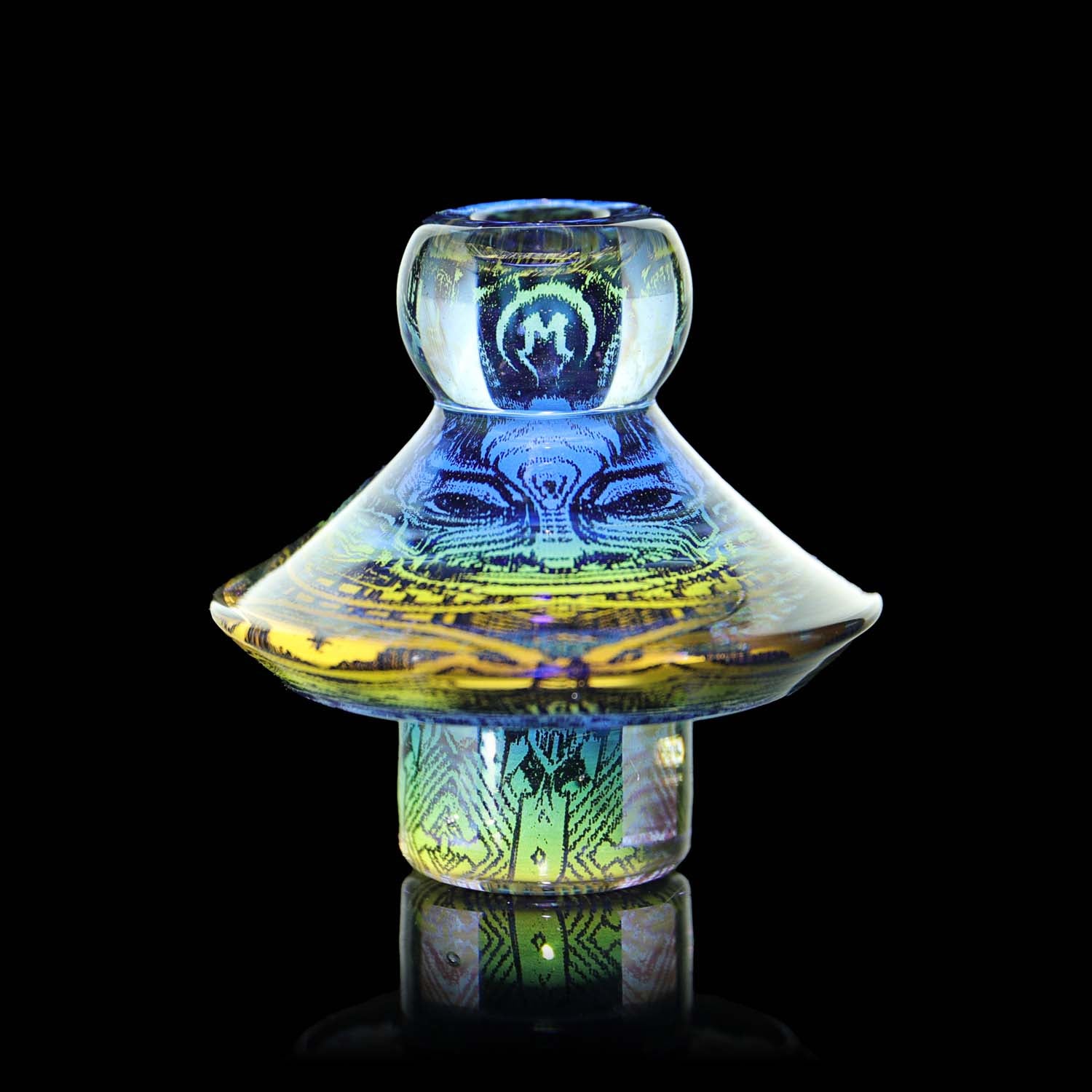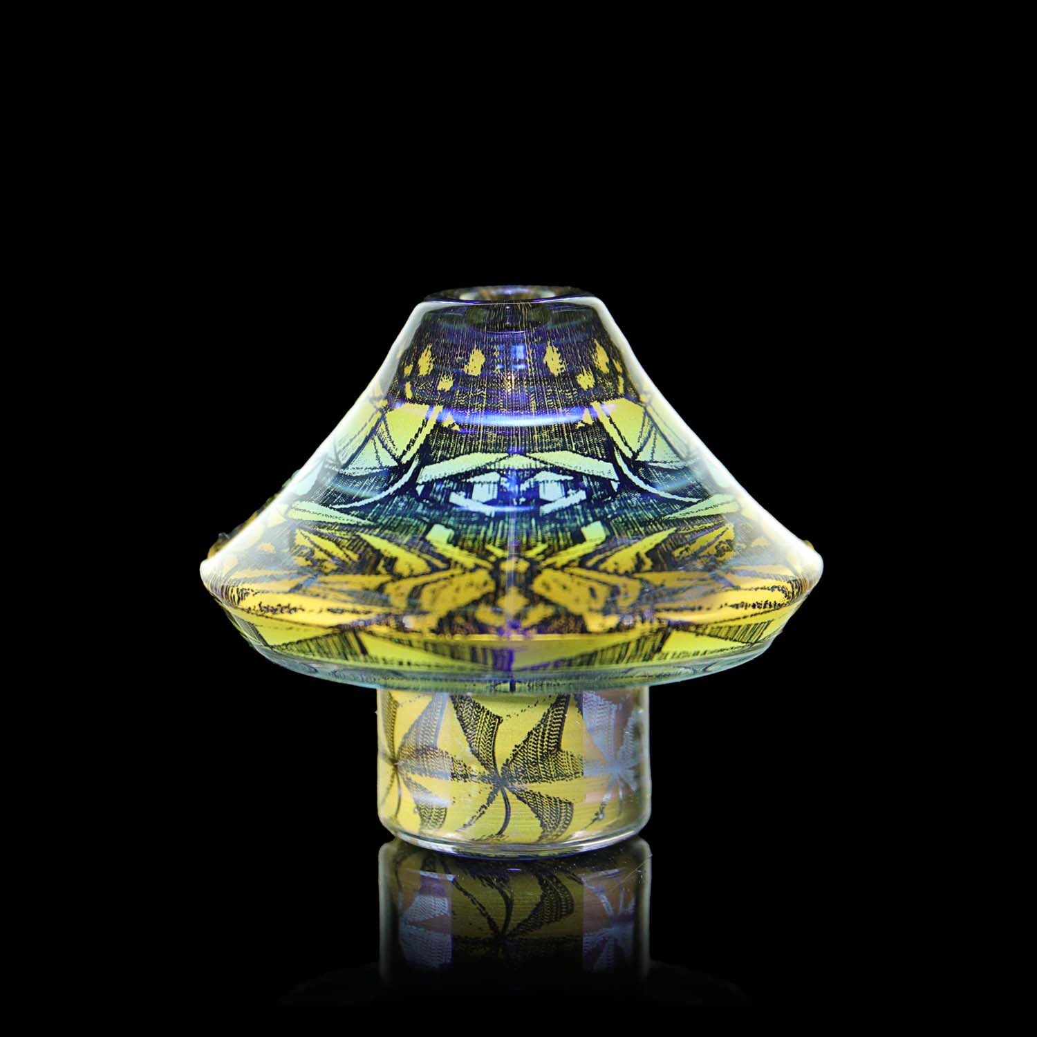 The Mothership Glass Hologram Slurper Cap is available in a variety of designs and engineered for compatibility with slurper-style bangers.