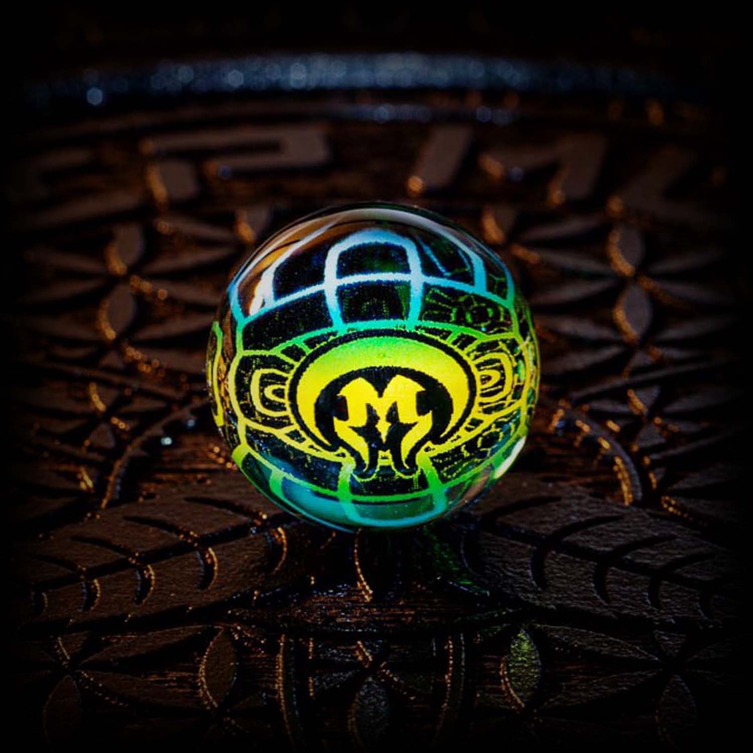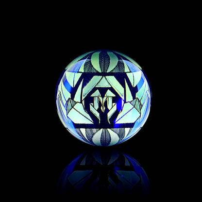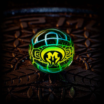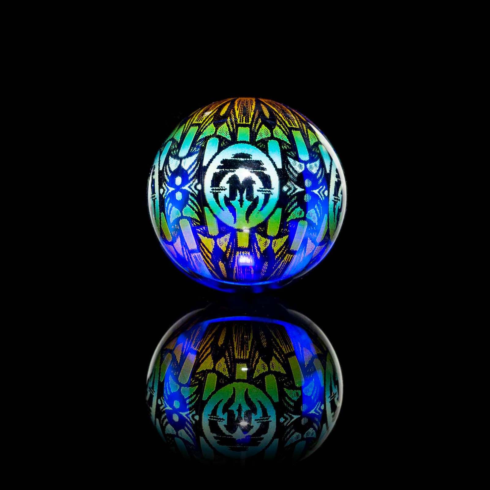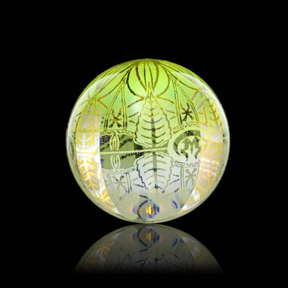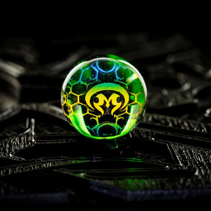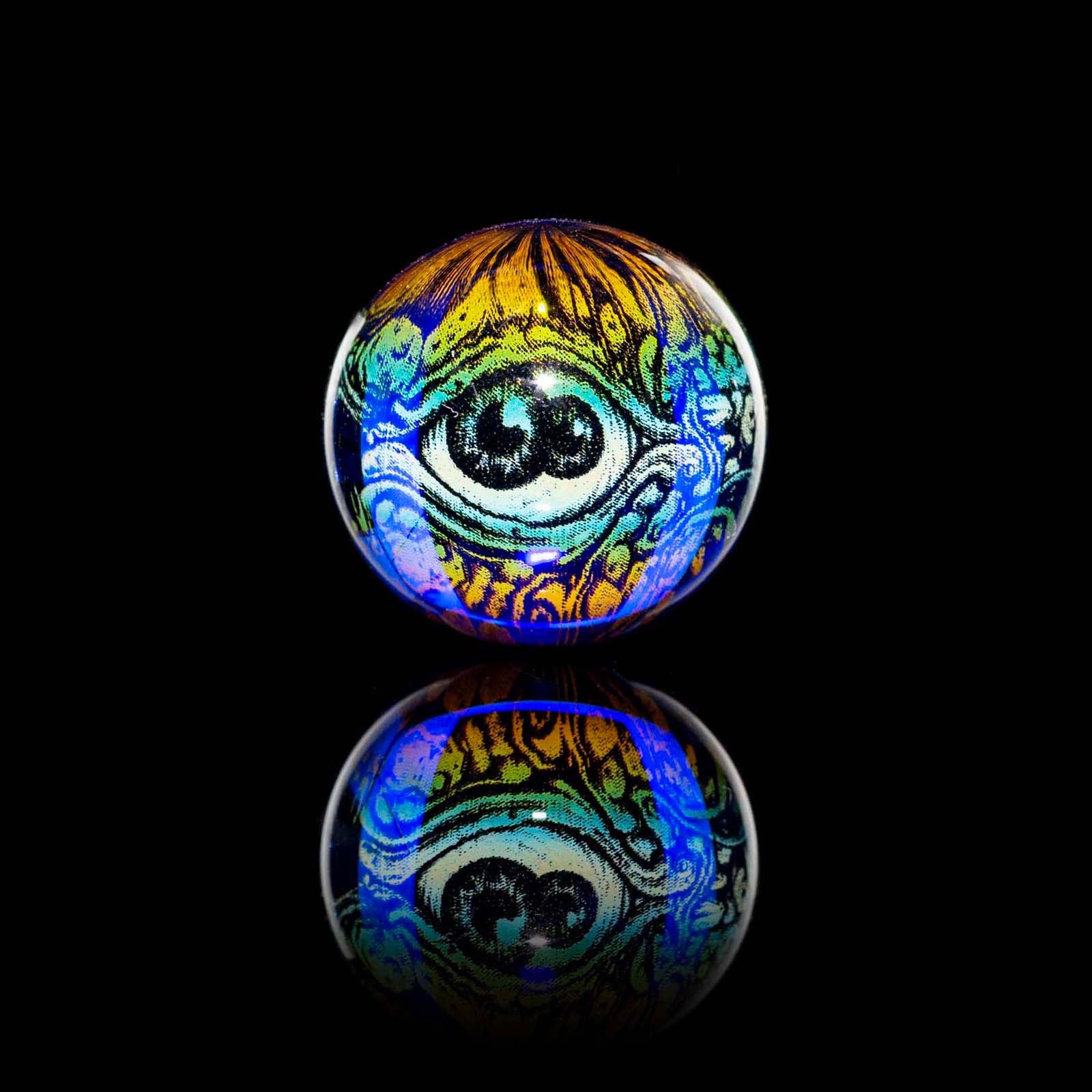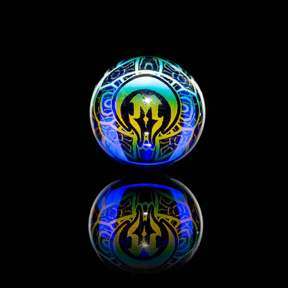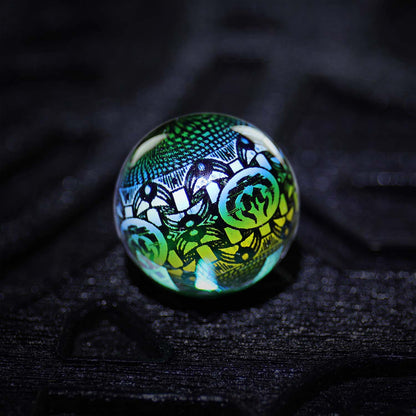 The Mothership Glass Hologram Slurper Marble measures 18mm-21mm and is designed for compatibility with slurper-style bangers.