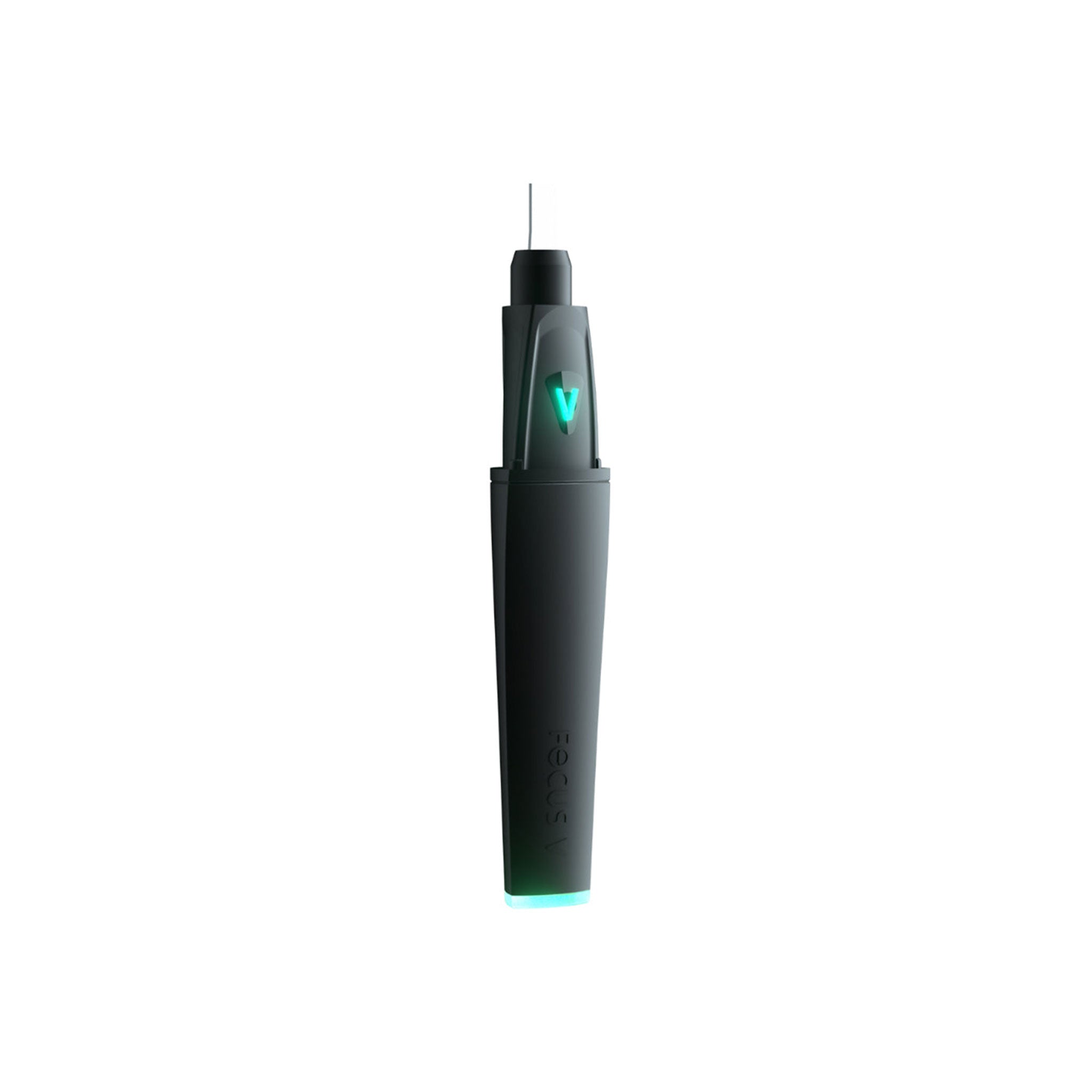 The Focus V Saber features an electronic design with three power levels (Blue-Low, Green-Medium, Red-High) accessed via two-click cycling, interchangeable heating tips, and an integrated LED spotlight for detailed visibility. This ergonomic tool includes a high-capacity battery with USB-C charging for extended use and intuitive one-button operation for quick heating control.