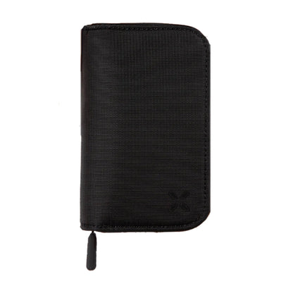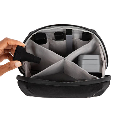 The PAX Smell Proof Bag offers water-resistant, odor-blocking storage in two sizes: Medium Bag (2.5" x 2.5" x 1.77", 2.5L capacity) and Pocket Size Case (5.5"L x 3"W x 1.25"H, 0.35L capacity). Constructed from 100% recycled ripstop nylon, both feature designated compartments, stretch pockets, and dividers designed to accommodate PAX devices and related accessories with protection from moisture and odor detection.