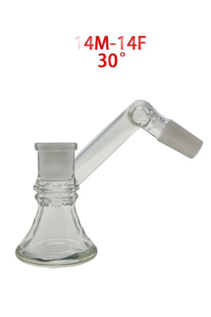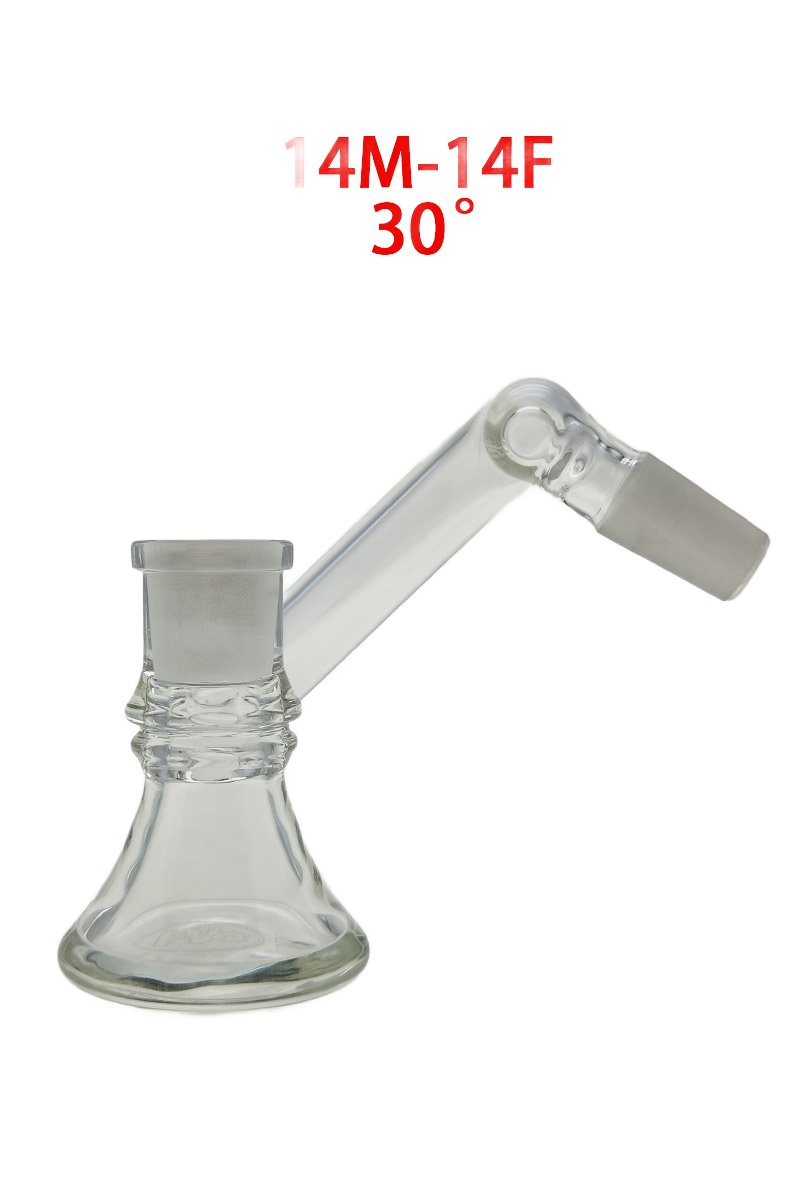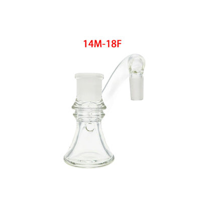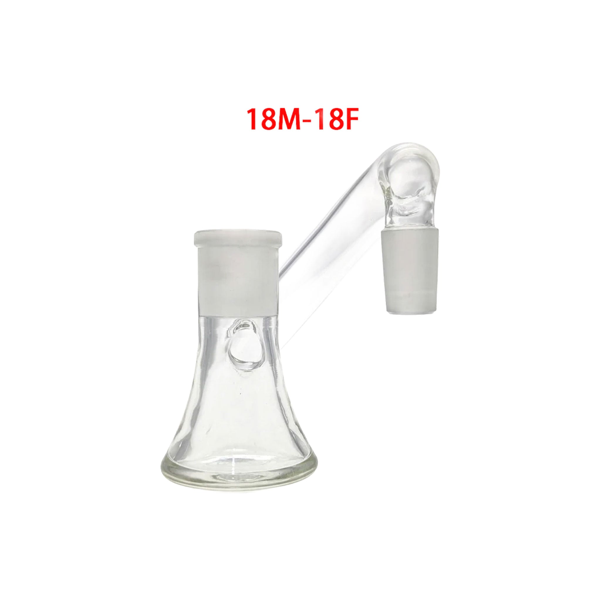 The TAG Non-Diffusing Dry Ash Catcher Drop-Down Adapter features a small water chamber positioned directly beneath the bowl to trap ash and debris while vapor travels above the water line without diffusion, preserving original airflow, flavor, and draw resistance. Constructed from premium borosilicate glass with drop-down design that maintains original joint height and setup geometry, this adapter includes laser-engraved permanent logo and is available in multiple joint sizes and angles.