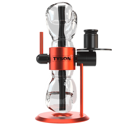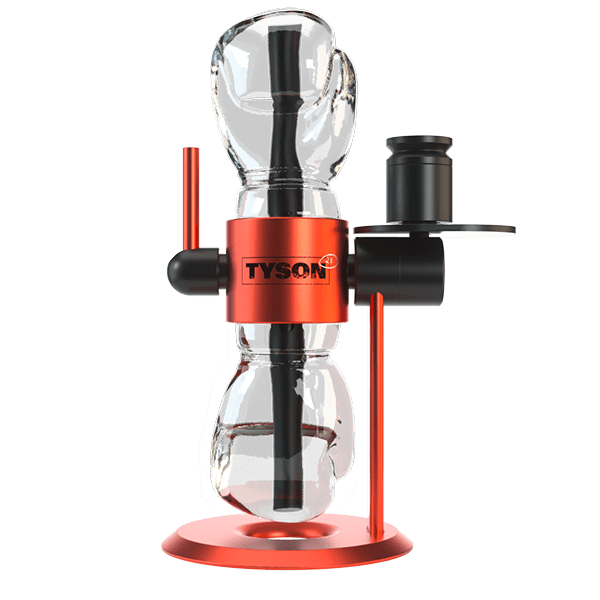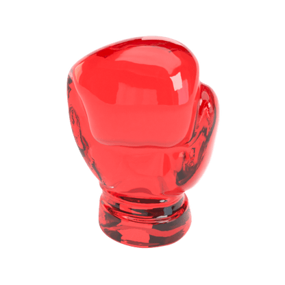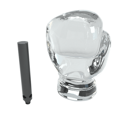 The Stündenglass Champion's Globe, developed in collaboration with Mike Tyson, features custom-molded borosilicate glass shaped like a boxing glove at 5mm thickness, available in clear or red. Compatible with all large-sized gravity infusers (not compatible with Kompact), this hand-blown globe's curved design generates optimized water displacement for enhanced rotation impact, and includes one glass globe and one small upstem for seamless device upgrade. Each globe is individually test-fitted and visually inspected before packaging.