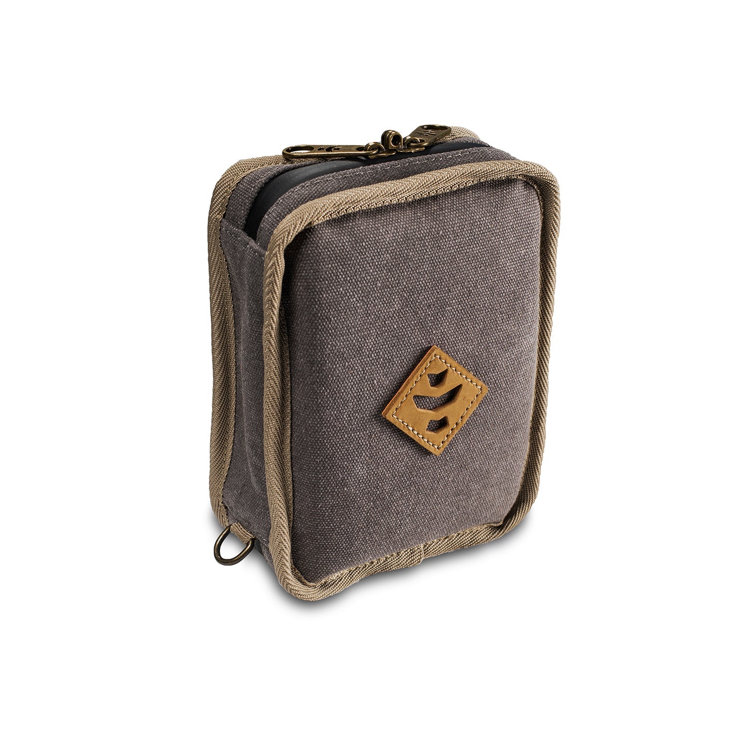 The Revelry Supply Pipe Kit includes a smell-proof, padded, and lockable storage bag containing a glass spoon pipe, 2-piece grinder, and pipe tool for secure storage and transport of session essentials.