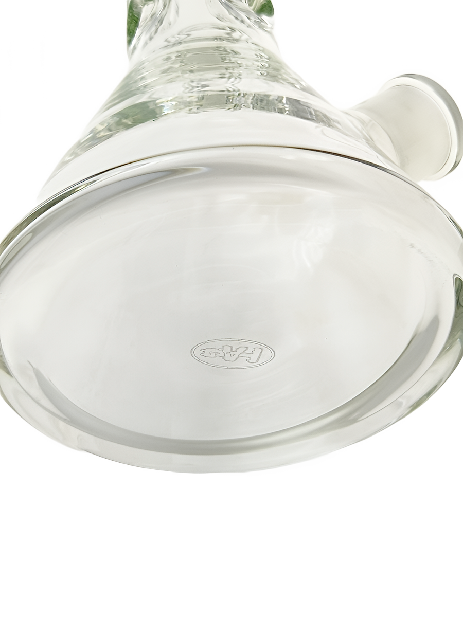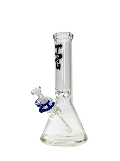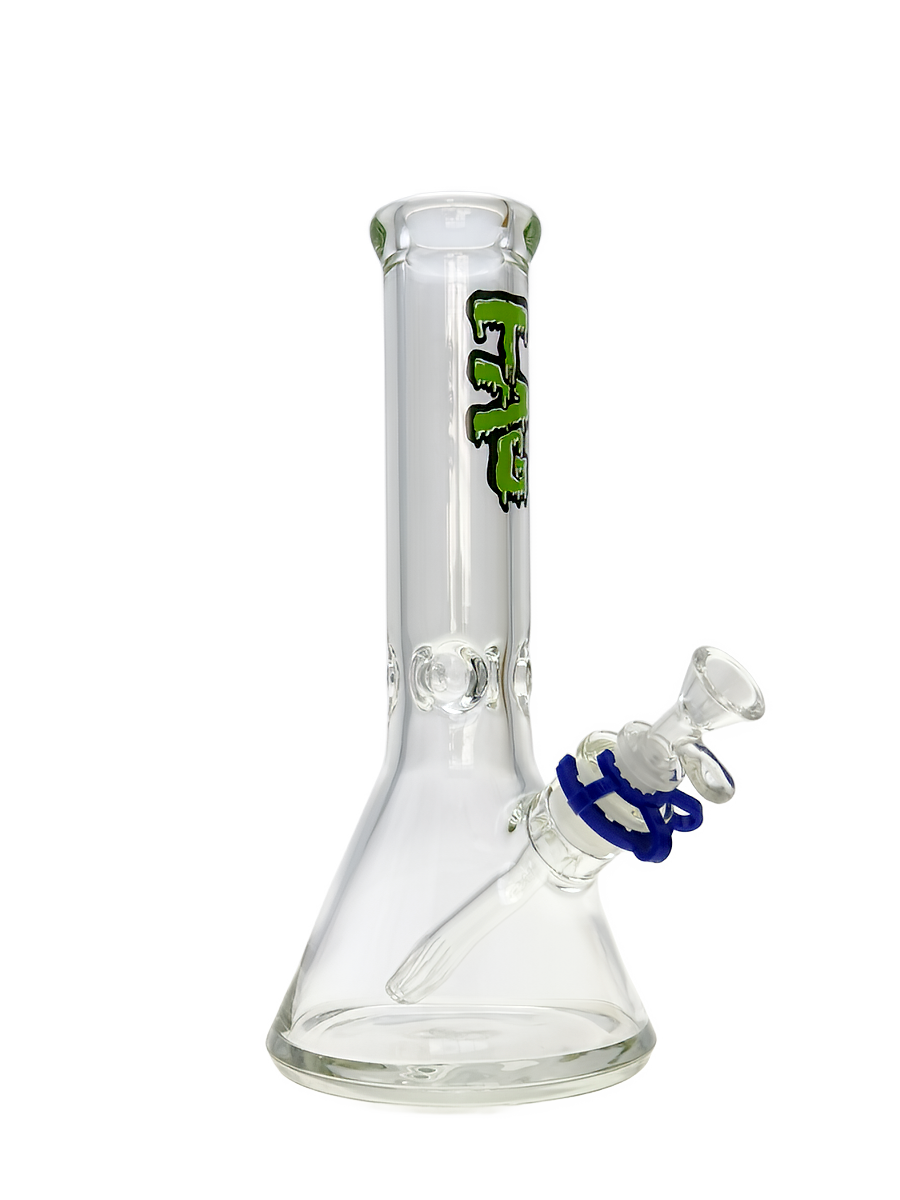 The TAG 12" Beaker 50x7MM features heavy-duty 7mm borosilicate glass construction with an 18mm female joint and included 18/14mm removable downstem measuring 4.25". This 12" water pipe combines a thick beaker base for stability with 50mm diameter tubing for comfortable handling.