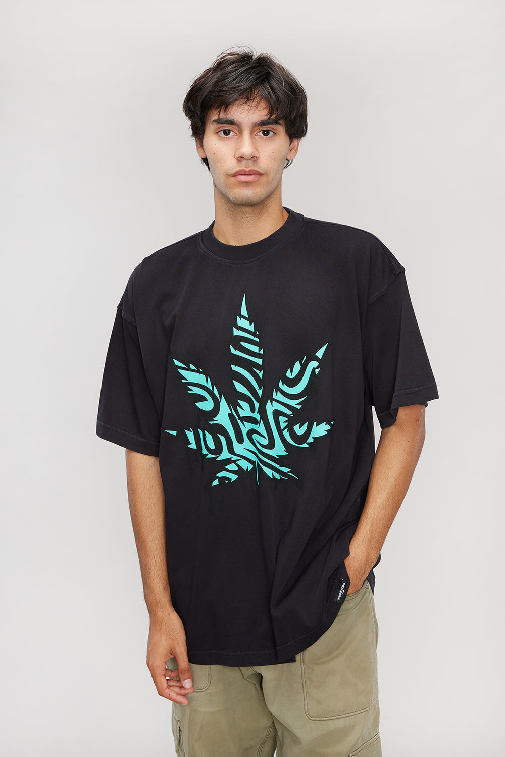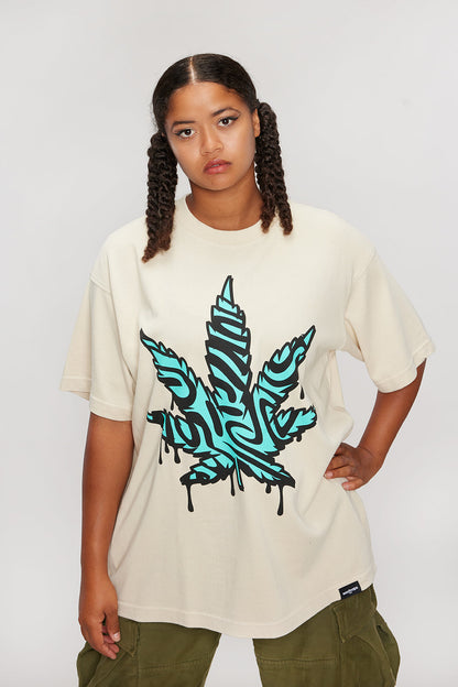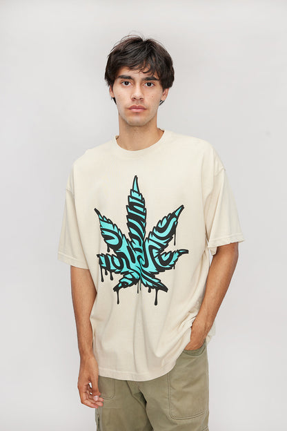 The Weedmaps Trap Tee features a graphic leaf design on heavy-weight, pre-washed 100% US combed cotton construction. Built with drop shoulders and an oversized fit, this short-sleeve tee offers relaxed comfort for everyday wear.